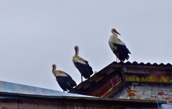 Днями в центрі міста Чорнобиль на дах адміністративної будівлі біля меморіалу Зірка полин сіли відпочити шість білих лелек. Про це повідомляє Чорнобильський Радіаційно-екологічний Біосферний Заповідник.